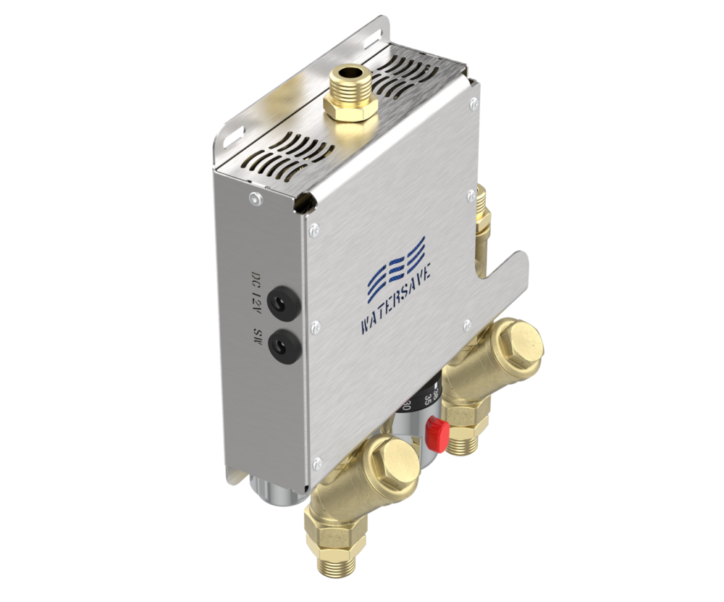 Temperaturę wody zmieszanej regulujemy termostatycznym zaworem mieszającym według własnego uznania, przyczynia się to do znacznej oszczędności wody, zwłaszcza gorącej oraz do zwiększenia komfortu użytkowania.